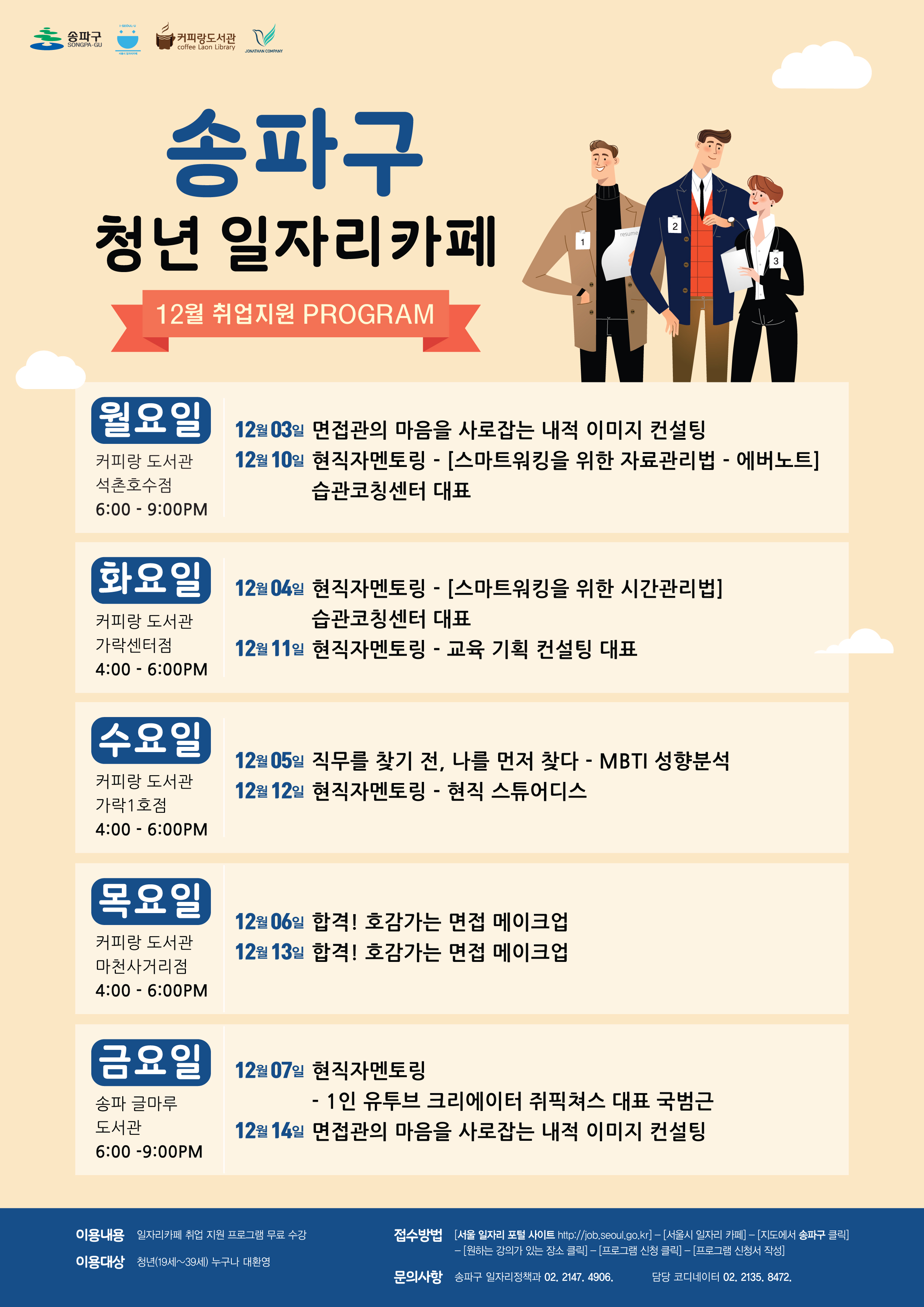 송파구 청년 일자리 카페 안내 글의 상세내용