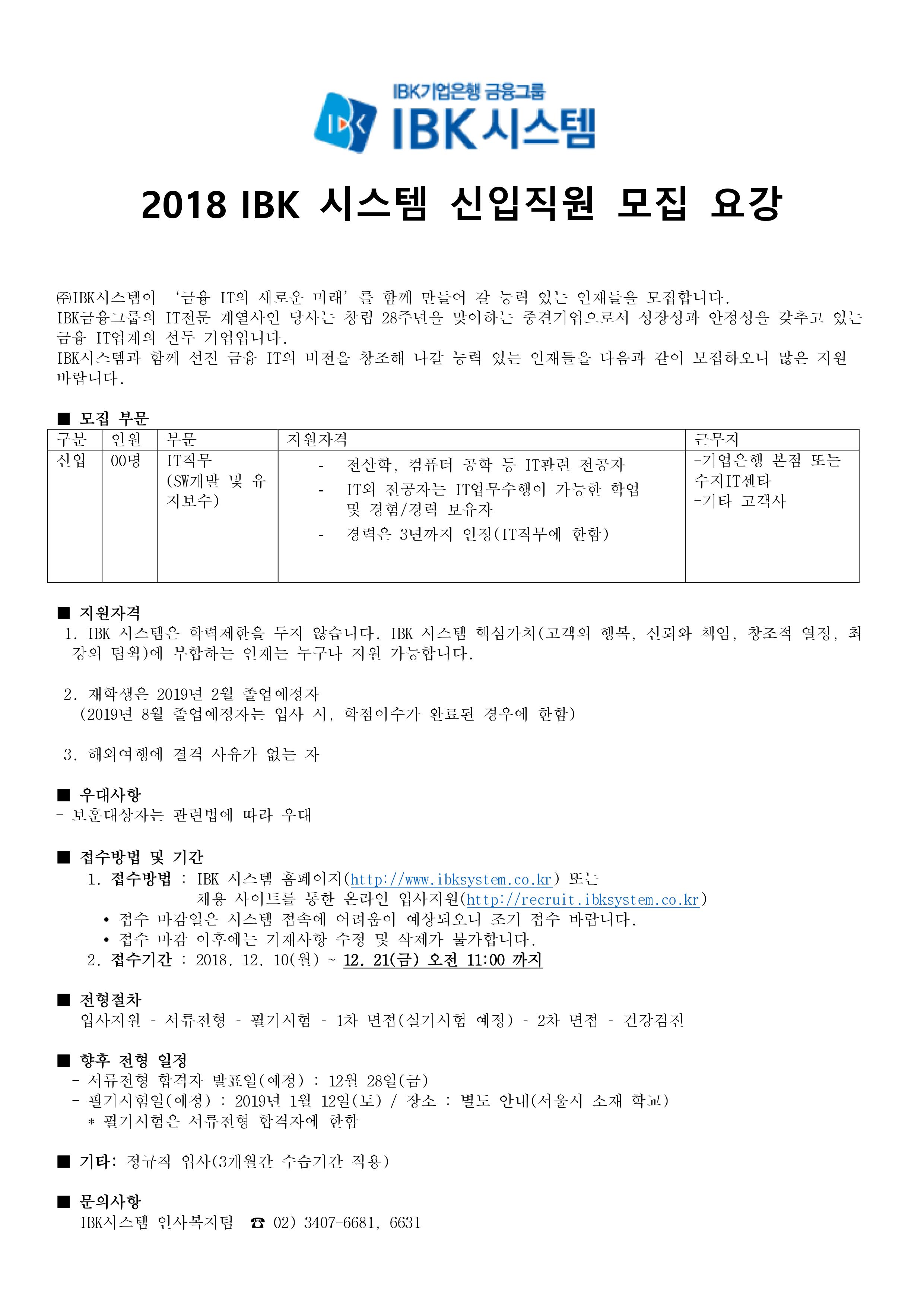 제목 (~12/21)2018 IBK 시스템 신입직원 모집 요강 안내