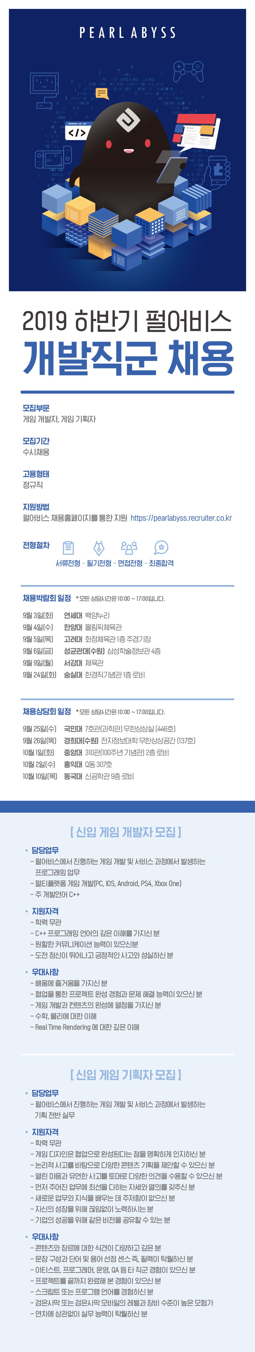 제목 [펄어비스] 2019년 하반기 개발직군 채용안내
