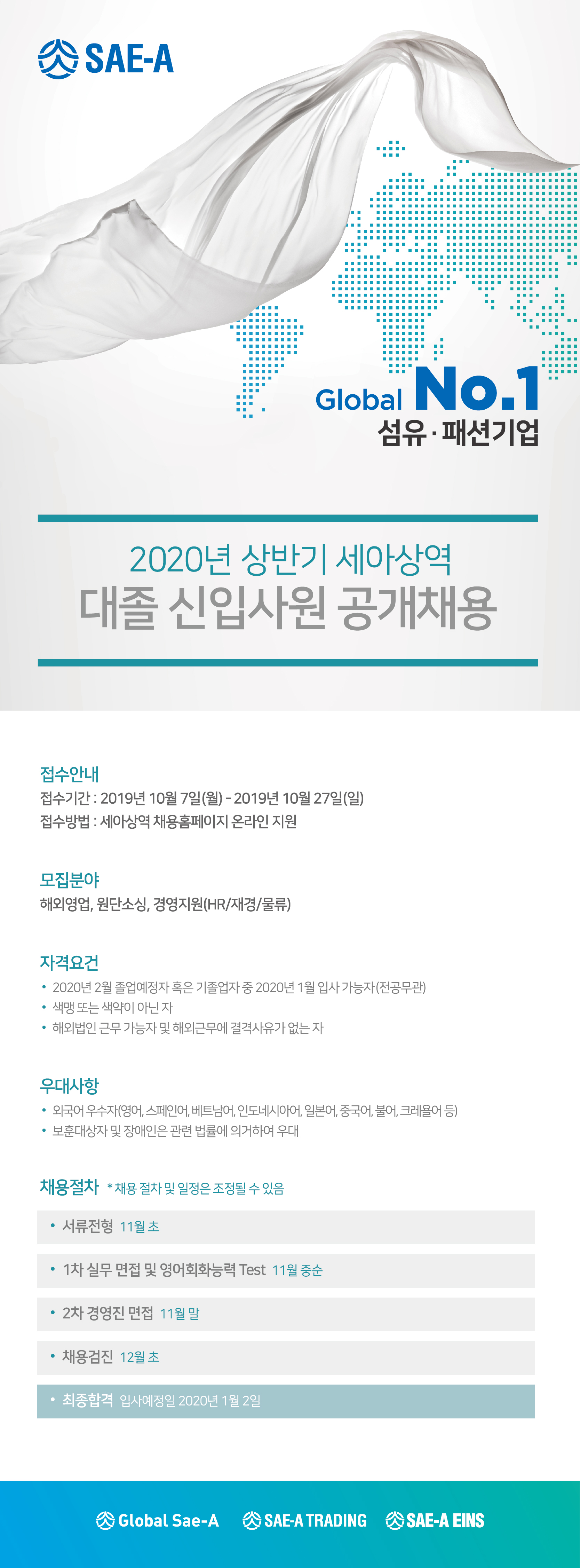 제목 (~10/27) [세아상역] 2020 상반기 신입사원 공개채용 안내