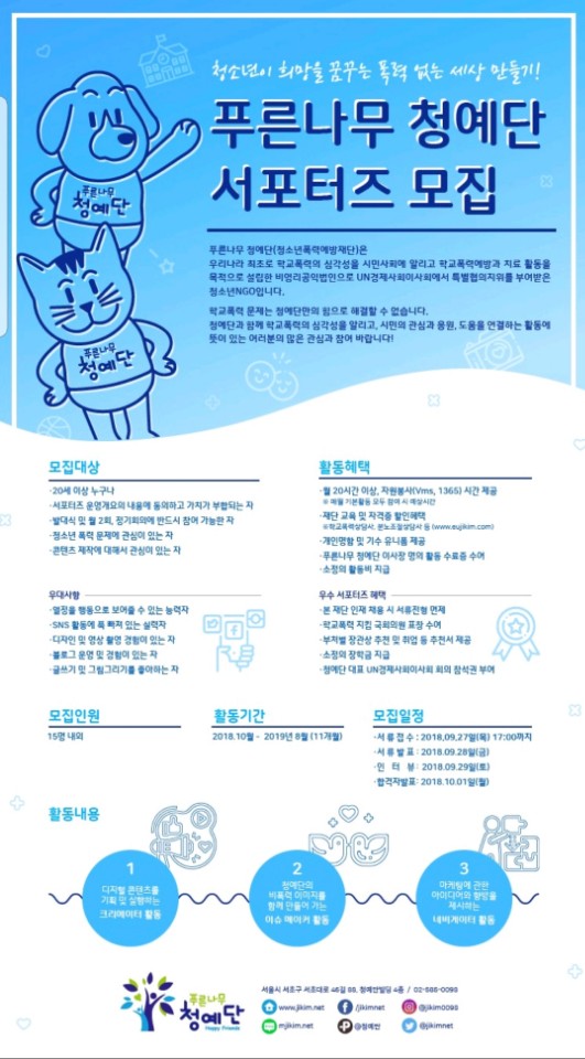 | 제목 | (~9/27)푸른나무 청예단 서포터즈 모집 안내 | ||||