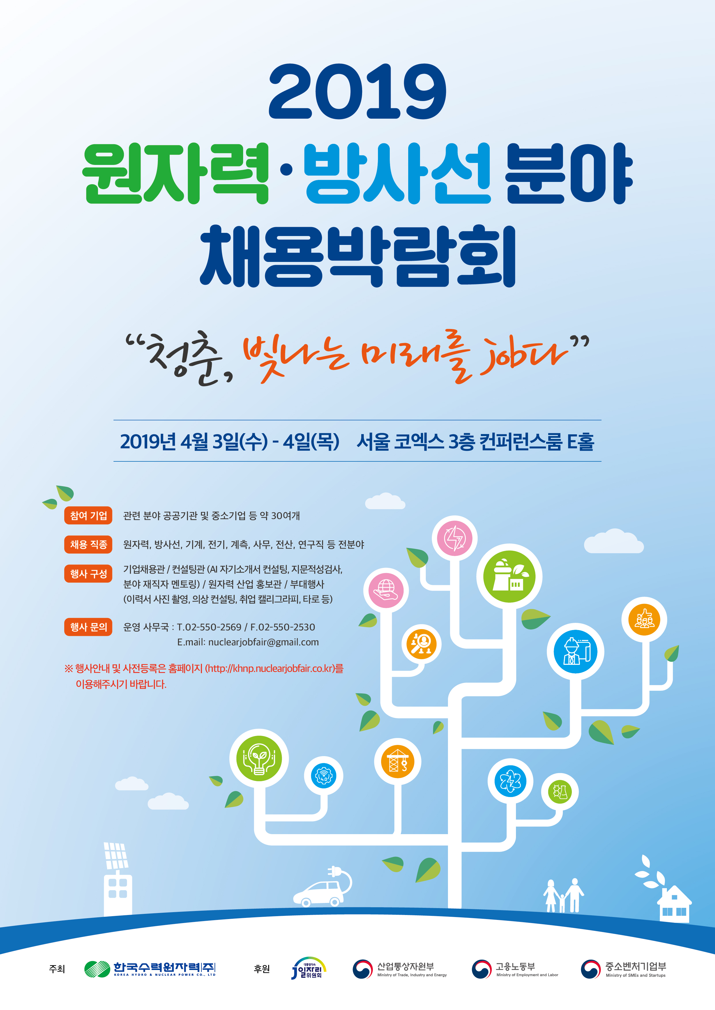 | 제목 | 2019 원자력, 방사선분야 채용박람회 안내 | ||||