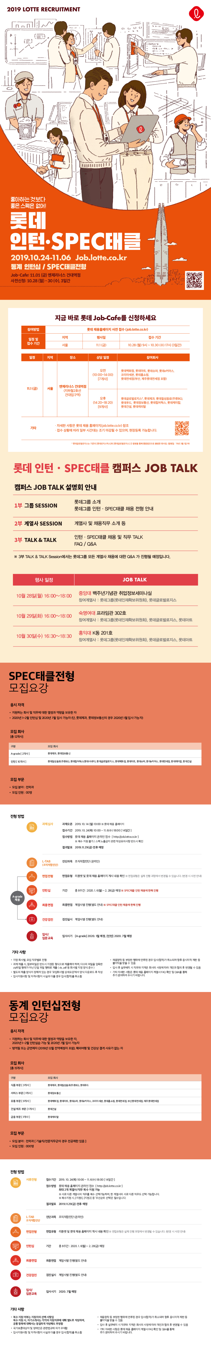 롯데그룹 2019 하반기 인턴/SPEC태클 채용 안내 글의 상세내용