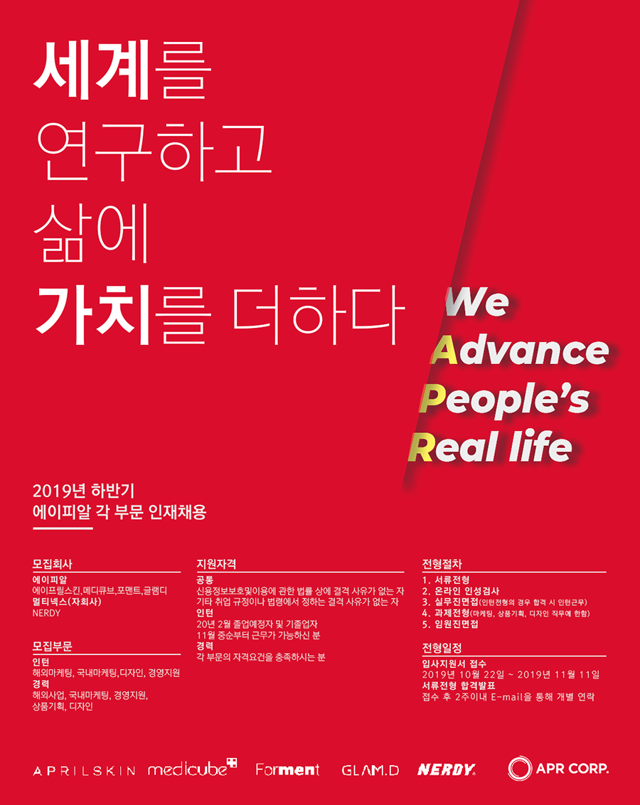 제목 [에이피알] 2019 하반기 각 부문 인턴 채용(정규직전환형) 안내