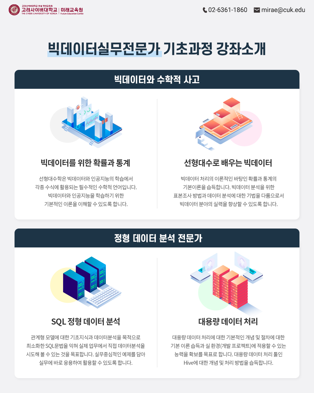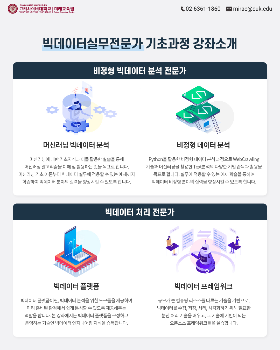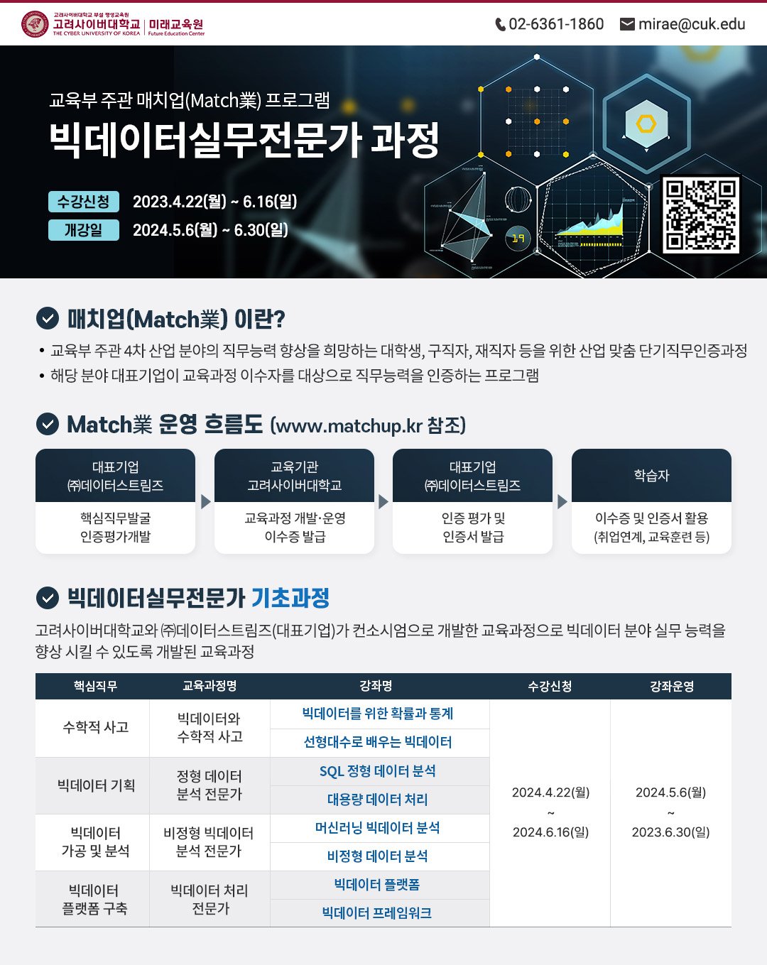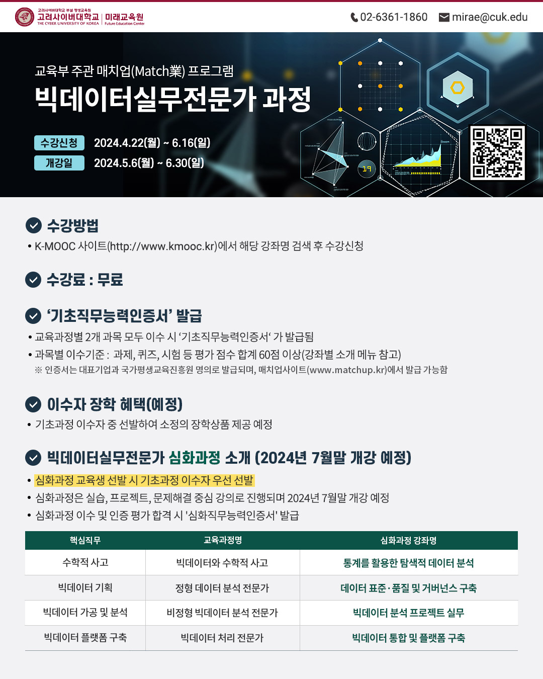 | 제목 | [고려사이버대] 매치업(Match業) 빅데이터실무전문가 과정 수강 안내 | ||||