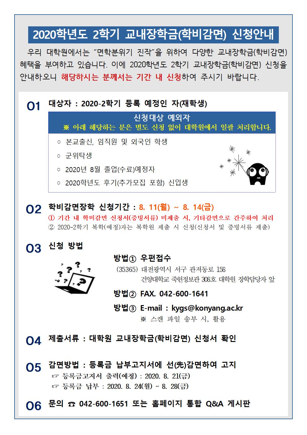 | 제목 | 2020-2학기 학비감면장학 신청 안내 | ||||