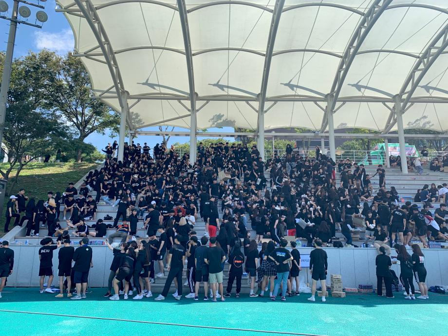 9월 18일, 창의융합캠퍼스 대운동장에서 2019 학교체육대회 ‘건양대전’이 진행되었습니다. ‘건양대전’은 각 단과대학이 한 팀으로 이루어져 진행되었으며 단과대학 별 출석비율에 따라 점수가 반영되는 출석 리그와 복불복 릴레이 달리기, 꼬리 쟁탈전, 워터 슬라이드, 치어리딩, 카트라이더 등 다양한 종목이 진행되었습니다. 심리상담치료학과는 재활복지교육대학 소속으로 14명의 학생들이 선수로 출전하였습니다. 재활복지교육대학 학생들은 ‘땀이 나도 티가 안 나기 때문에 부담 없이 체육대회를 즐기라’는 의미에서 검은색 티를 입고 참여하는 단합심을 보여주었으며 선수로 출전한 학생들은 등 뒤에 ‘재주 많은 재활복지 주인공들’이라는 의미가 담긴 ‘JAEJU’가 새겨진 단대티를 입고 경기에 참여하였습니다. ‘건양대전’을 통해 심리상담치료학과 학우들은 과제와 시험에 대한 스트레스를 풀고, 재활복지교육대학 소속 학우들과 함께 한마음이 되어 출전선수들을 응원하며 체육대회를 즐기는 뜻 깊은 시간을 가졌습니다. 이러한 학우들의 응원에 힘입어 재활복지교육대학은 1위하는 쾌거를 이루었습니다. |