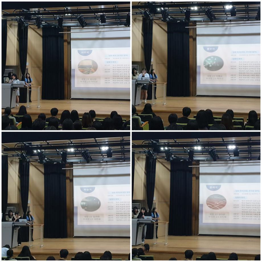 ?2024-2학기 심리상담치료학과 개강총회? 2024년 9월 2일 심리상담치료학과 개강총회가 있었습니다 ? 새로운 학기를 맞이하여 학과의 다양한 소식을 전하는 개강총회를 진행했습니다! ? 송원영 교수님께서 따뜻한 인사말 나누어주셨습니다! ? 심치과 학생회 임원들과 2학기 과대, 부과대 소개 후 국별보고가 있었습니다! ? 끝까지 개강총회에 집중하여 참여해주신 학우분들 모두 감사드립니다! |