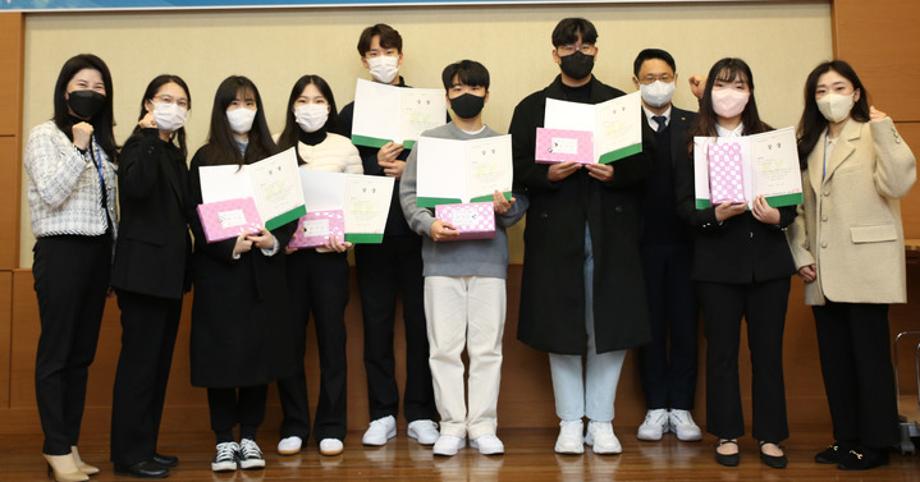 [논산=뉴시스]유순상 기자 = 건양대는 취창업지원센터가 교내에서 ‘셀프뷰 면접 경진대회 시상식’을 개최했다고 2일 밝혔다. AI(인공지능) 기반 화상면접 시스템을 이용, 비대면 면접과 취업 역량을 강화하기 위해 대회를 열고 있다. 지난 대회 수상자 중 졸업자 전원이 취업에 성공하는 성과를 낸 바 있다. 올해는 60여명이 참가했고 최우수상 1명과 우수상 1명, 장려상 3명, 참가상 5명 등 10명에게 상을 전달했다.