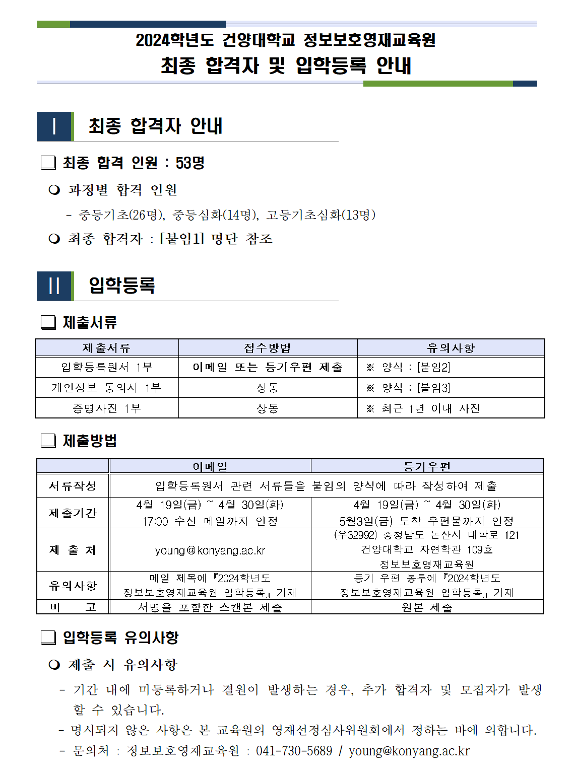2024학년도 정보보호영재교육원 최종합격자 및 입학등록 안내.pdf