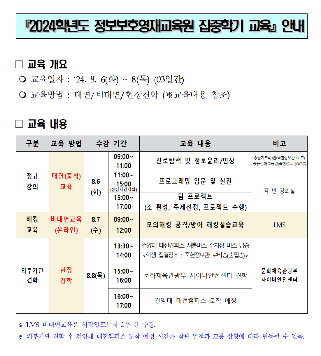 | 제목 | 『2024학년도 정보보호영재교육원 집중학기 교육』 안내 | ||||