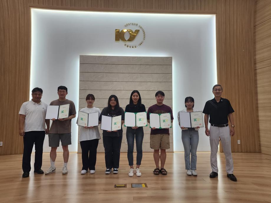 건양대 금융세무학부 장학금 전달식 가져.... 건양대학교 금융세무학부는 10일 건양대학교 창의융합캠퍼스에서 ‘故 김웅수 교수 장학금’ 수여식을 갖고, 장학증서를 전달했다고 밝혔다. ‘故 김웅수 교수 장학금’은 건양대학교 경제학과에서 재직하며 후학양성을 위해 힘썼던 故 김웅수 교수가 생전 장학금 납부의사를 밝혔고, 가족들이 유지를 받들어 지난 2018년~2021년 3년에 걸쳐 건양대학교와 금융학과에 1억 2,000만원을 기탁하면서 만들어진 장학금이다. 이번 장학금 수여식에는 2023학년도 1학기 학업우수자 및 학교생활우수자 6명을 선발해 장학증서와 함께 총 8,282,500원의 장학금을 전달했다. 배세영 교수(금융학전공 교수)는 “故 김웅수 교수님께서 생전에 학생들이 경제적인 걱정 없이 학업에 전념할 수 있기를 바라셨다.”면서 “감사한 마음이 학생들에게도 잘 전달되었으면 좋겠다.”고 전했다. 장학금을 수여한 김영국씨(금융학과 4학년)는 “특별한 의미가 있는 장학금을 받아서 기쁘다. 의미를 깊이 새기고 감사한 마음에 보답할 수 있도록 최선을 다해 노력하겠다.”고 밝혔다. ‘故 김웅수 교수 장학금’은 매학기 장학생을 선발할 예정이다. 한편 故 김웅수 교수는 이 장학금 외에도 생전에 ‘영임장학금’을 기부해 매년 장학금을 지급하고 있으며, 건양대학교는 2학기 영임장학생을 선발해 장학금을 전달할 예정이라고 밝혔다.