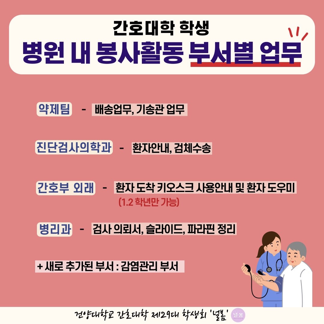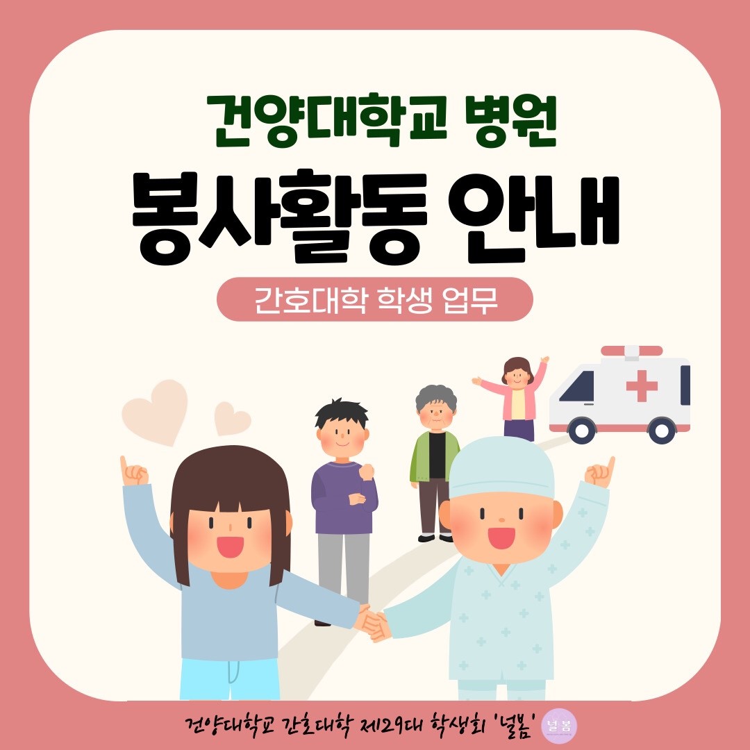| 제목 | [제29대 학생회 널봄] 학생 주도 병원 봉사활동 신청 안내 | ||||