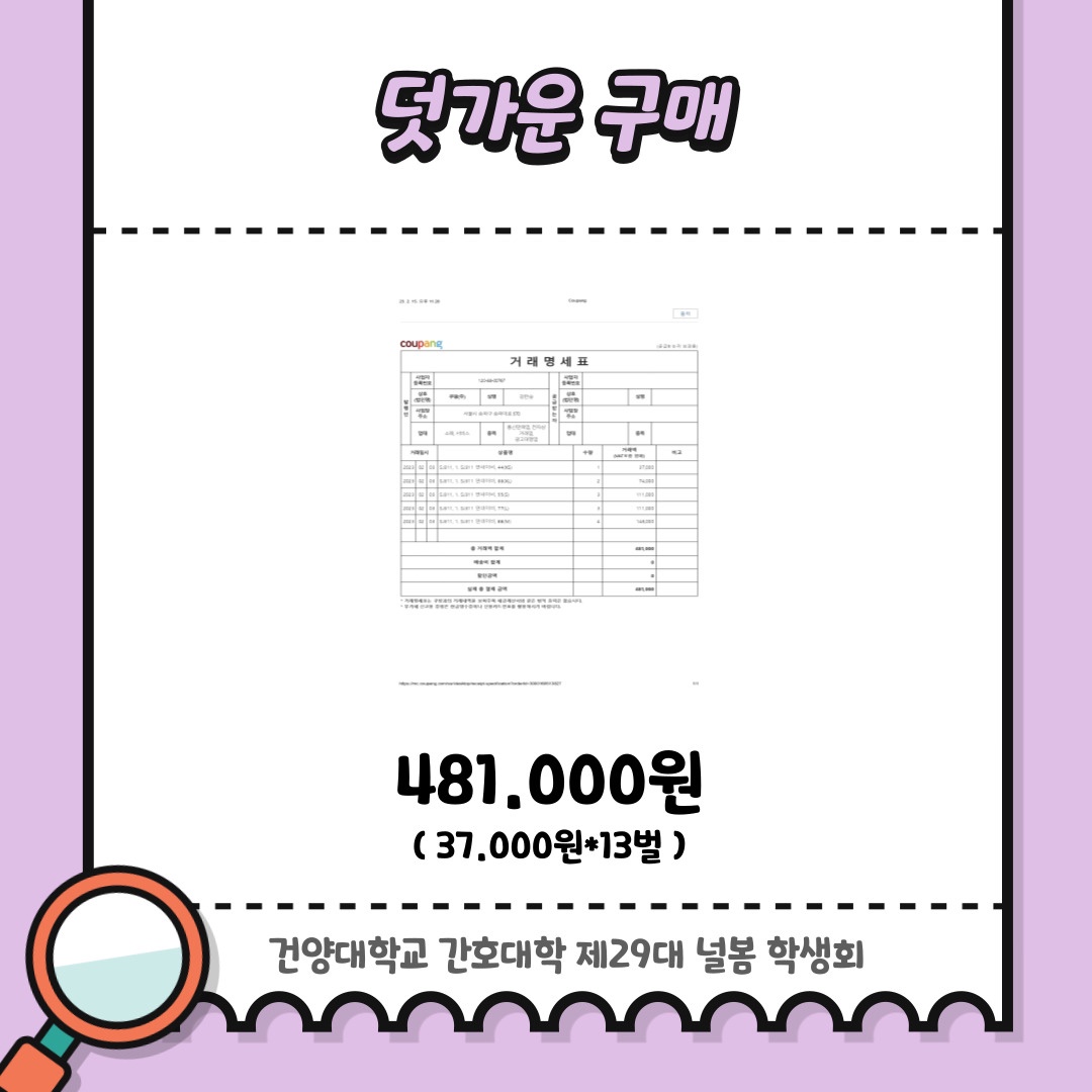 | 제목 | [제29대 학생회 널봄] 2월 학생회비 사용 내역 공지 | ||||